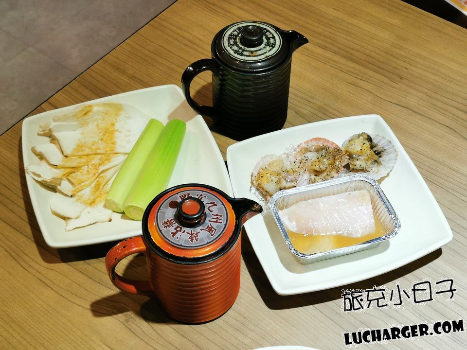 茭白筍、幸鮑菇、南洋鮮魚排、半殼扇貝,
