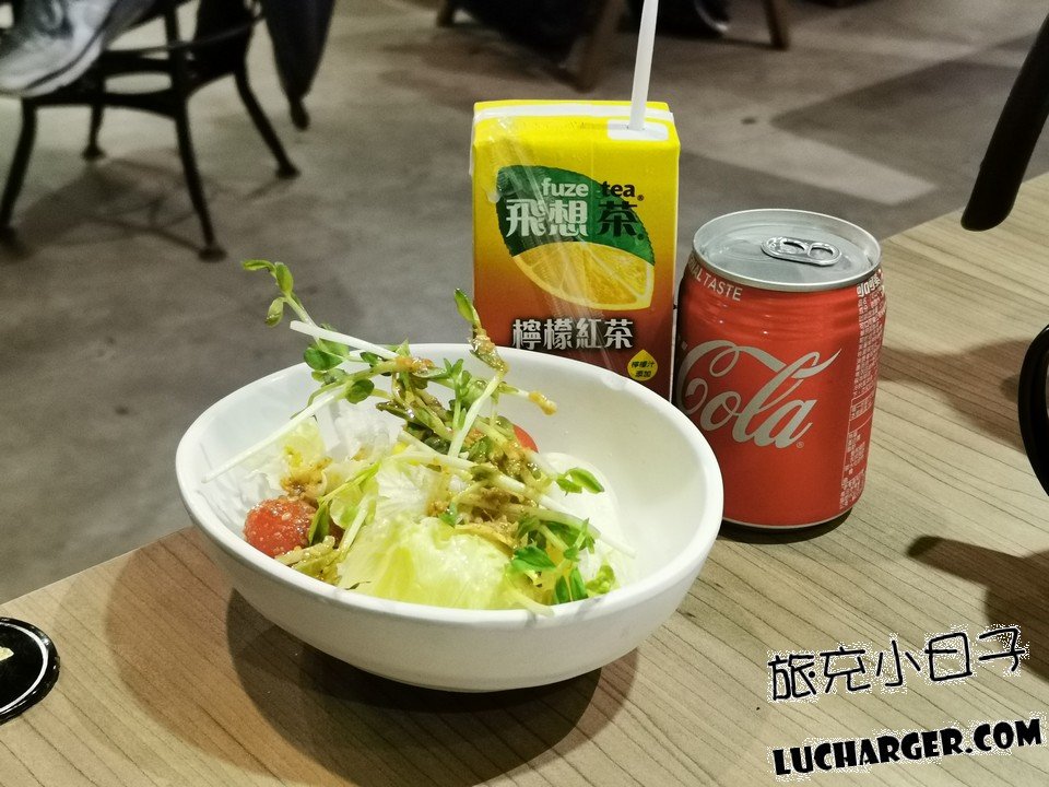 飲料的部分是提供瓶裝的,有汽水、茶飲,還有白開水,