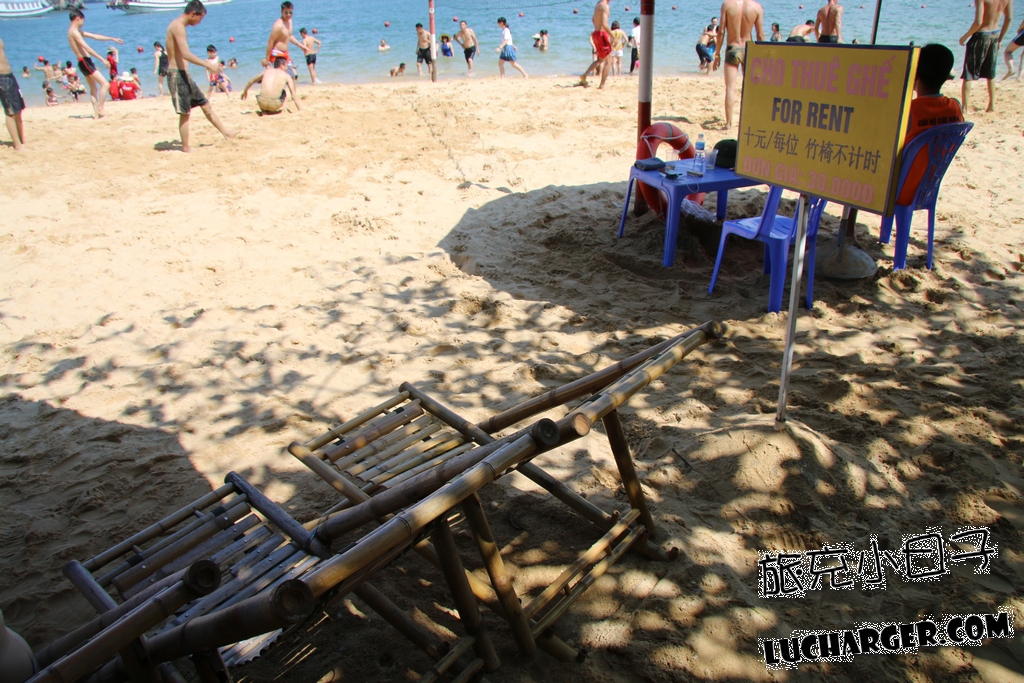 沙灘上的躺椅是需要另外付費的,