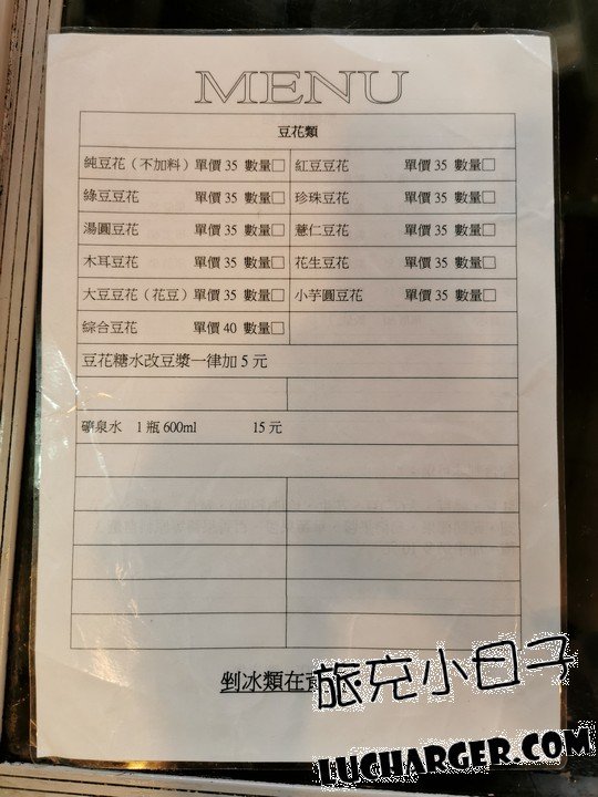 這裡的單品豆花 $35元、綜合豆花(三種料) $40元、豆花糖水改豆漿 +5元