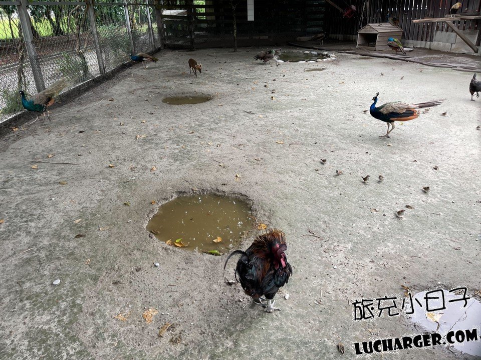 有看到孔雀後方的雞嗎,他們其實都是自己飛上去的!