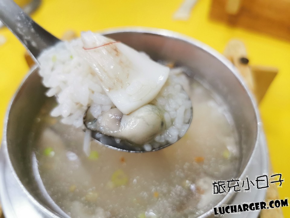 來到這裡必點的就是鮑魚海鮮粥,裡面的配料相當豐富,