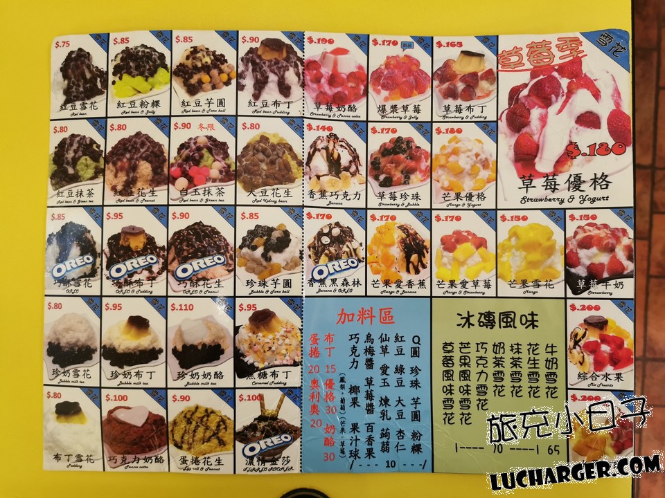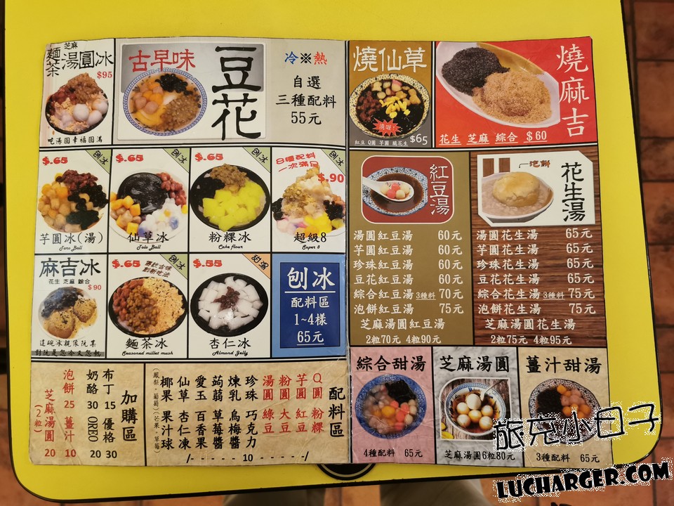 裡面的選項有包括刨冰、豆花、燒麻糬、燒仙草、紅豆湯、花生湯,還有超吸睛的雪花冰,光是看到滿滿的配料,就口水直流,想一探究竟!