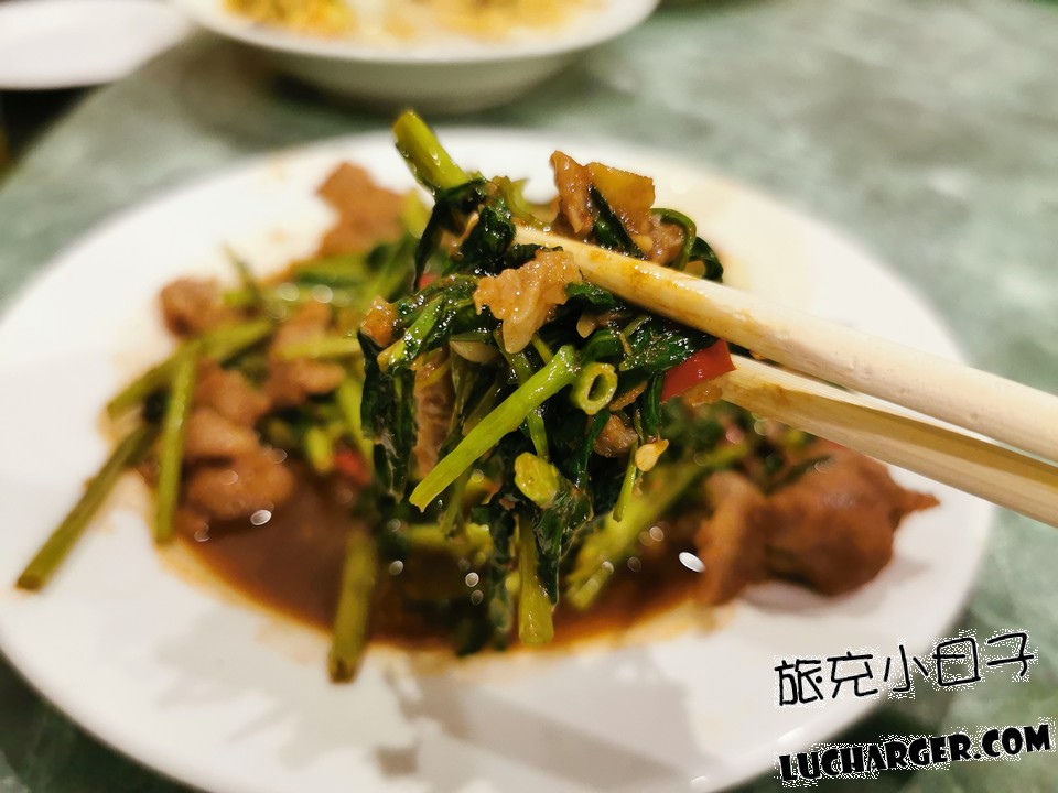 跟空心菜一起快炒,