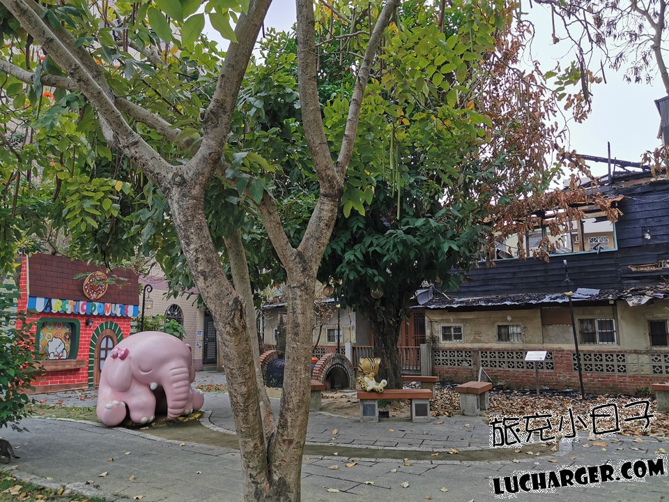 是插畫家SMART莊信棠以沉睡森林為主題設計的園區,結合原有綠樹、防空洞、路燈,加上計白熊、粉紅象、狐狸鼠等Q版動物,可愛極了,
