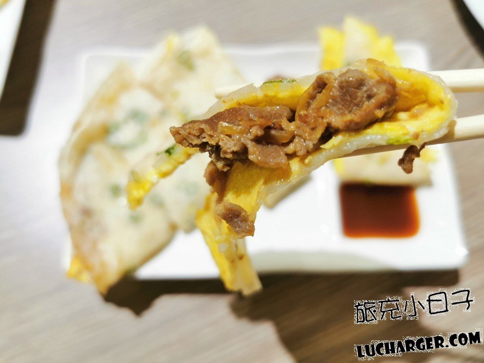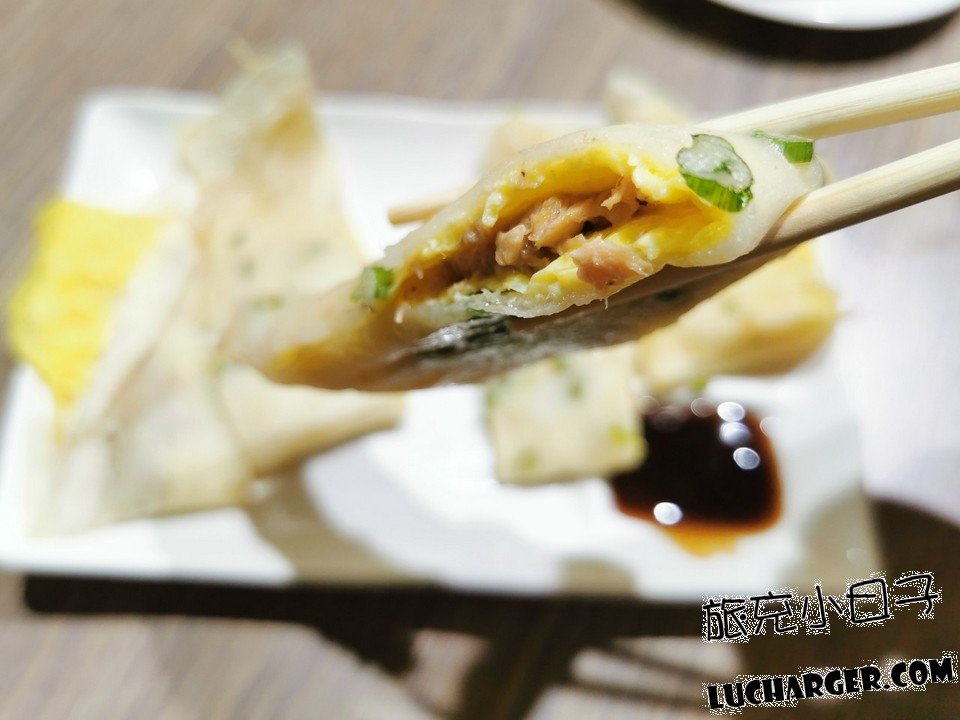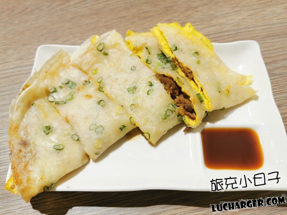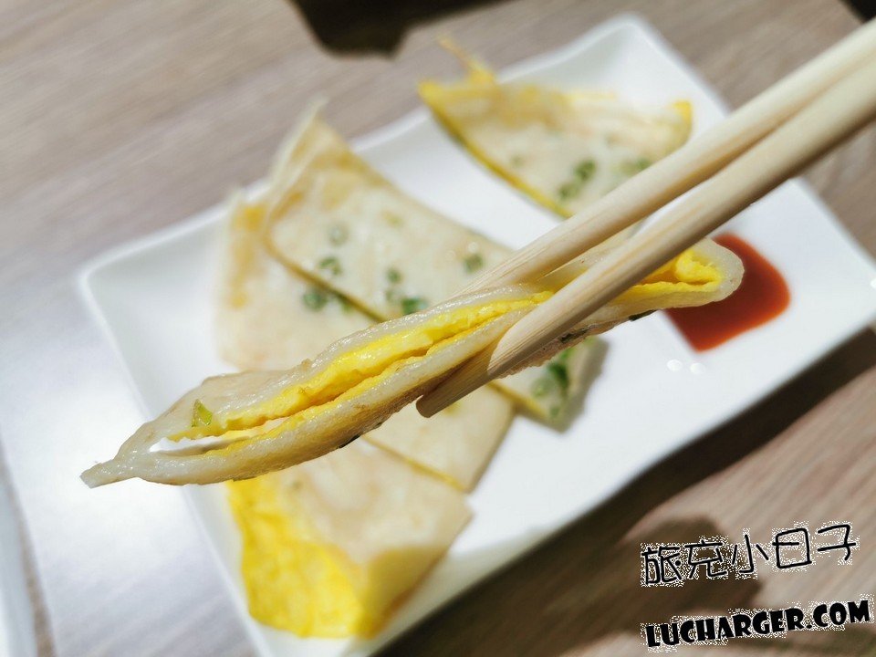蛋餅皮是用粉漿去製作的,吃起來彈性十足,邊緣的地方還有點脆脆的,