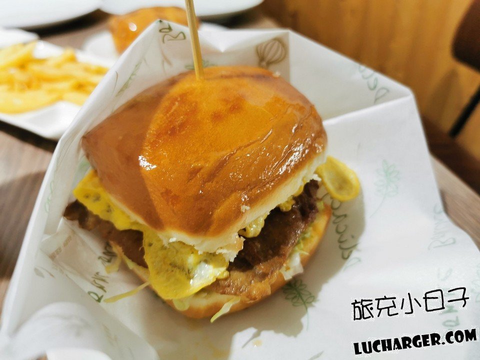 旁邊還加了生菜、洋蔥、荷包蛋、起司、蜂蜜芥末醬,吃起來相當爽口!