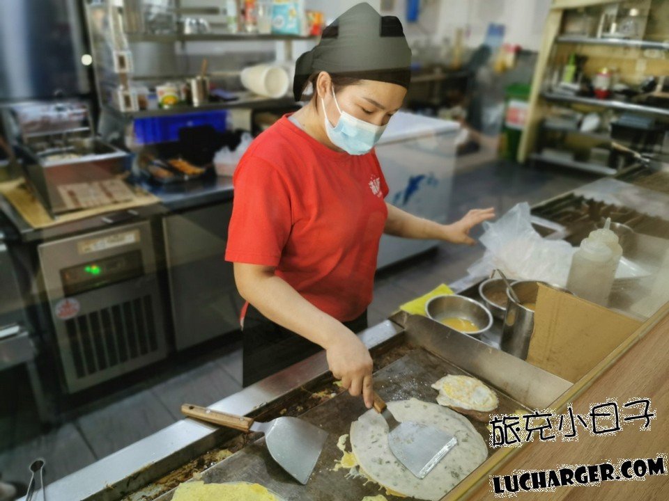 服務人員在做蛋餅,等等就要上桌了,還我肚子都餓起來了!
