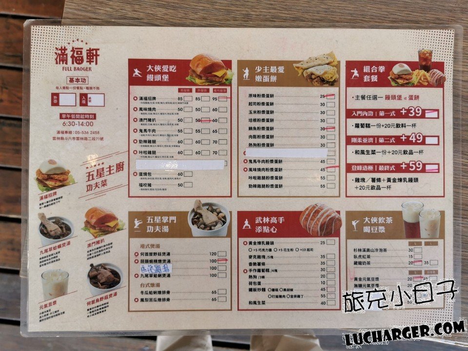 餐點中有招牌的饅頭堡、粉漿蛋餅、套餐、點心、飲品,還有必點的養生湯,料多實在,一整天的元氣就在早上就把他補足了,