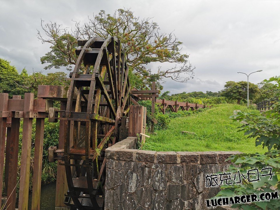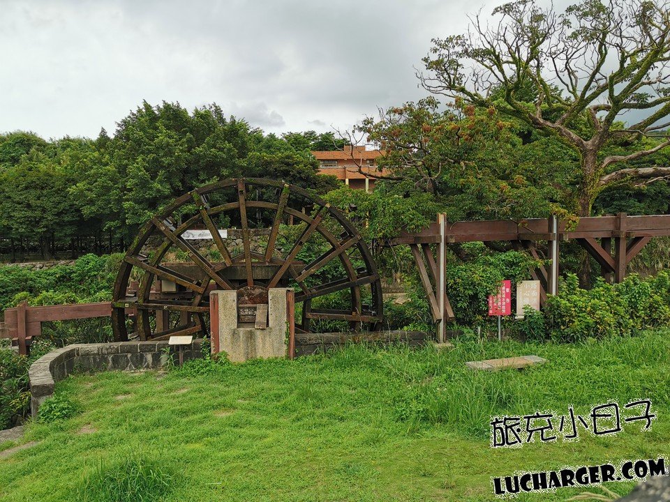 而這這是三芝六座水車文化景觀園區當中占地最大的,總面積近0.6公頃,有大型木造水車、生態沉砂池、景觀橋、木棧休憩平台、環園步道,相當不錯!