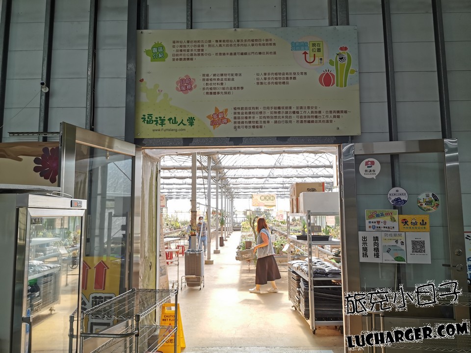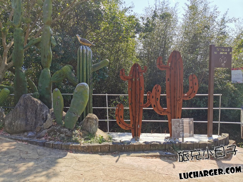 福祥仙人掌多肉植物園有成停車場、小葉欖仁步道、紫藤花架、綜合展售溫室、