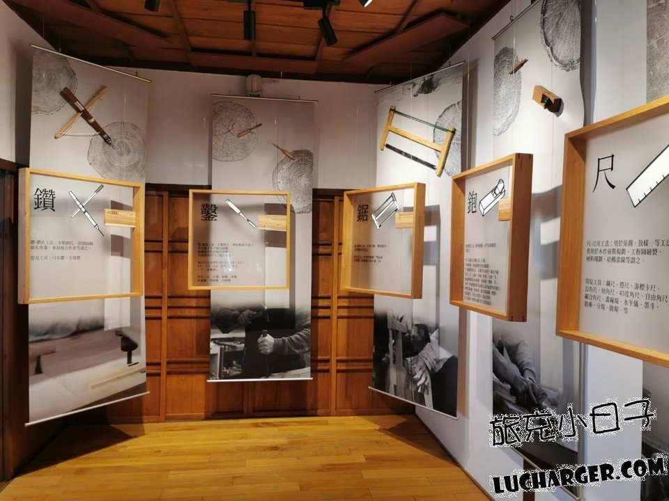 參觀完上個區域走道此處,家具都是由傳統工法製成,
