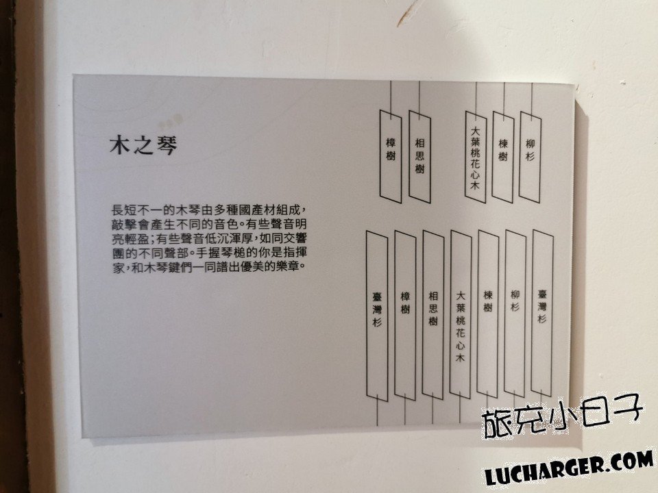 這裡還有5種不同的木頭,分別為台灣杉、樟樹、楝樹、大葉桃花心木、相思樹,