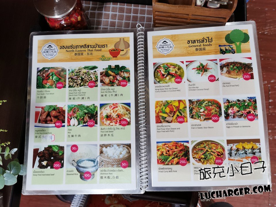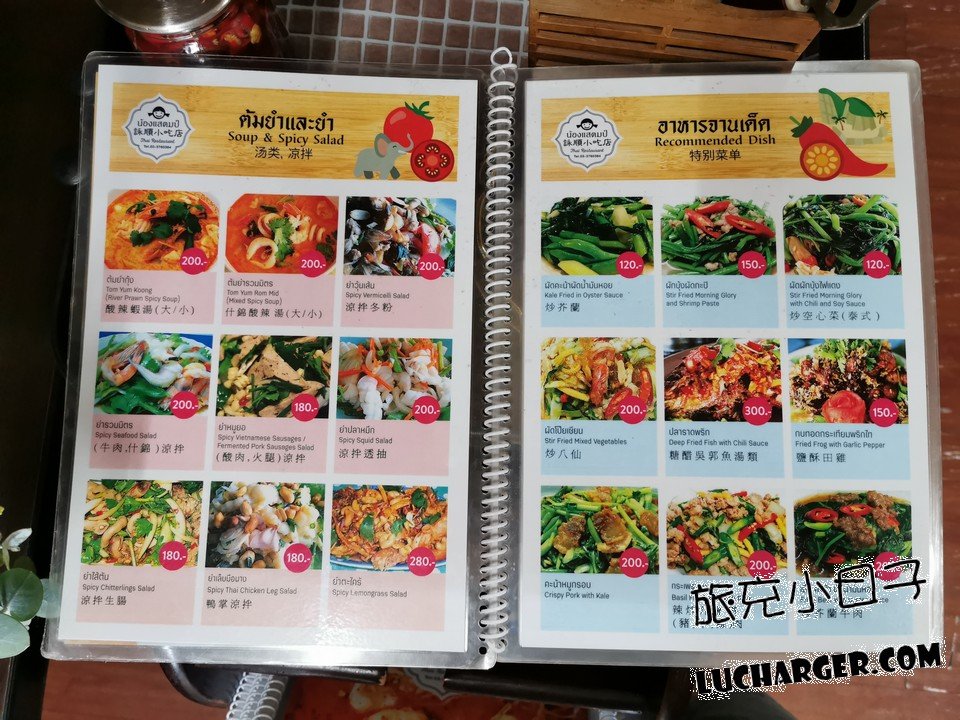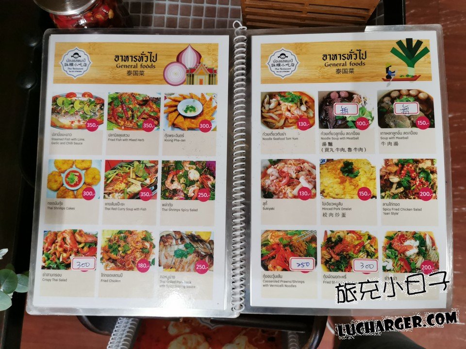 菜單上面都是泰文為主,中文跟英文為輔,