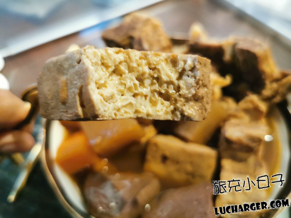 裡面的空隙很多,所以吸附了滿滿的湯汁,一口咬下都還會噴汁,所以在享用時要特別小心,