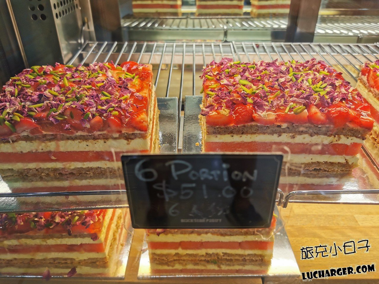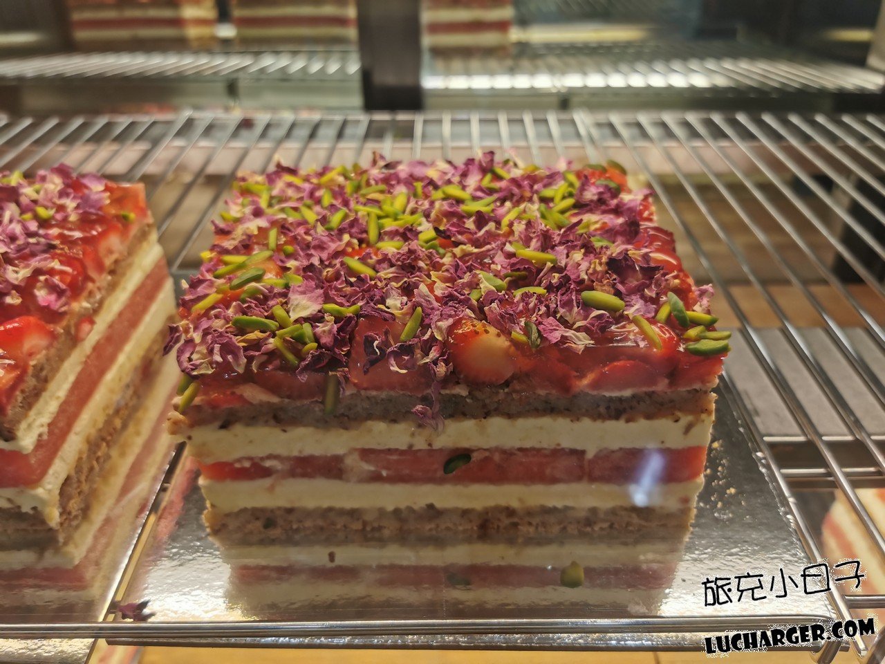 蛋糕層層堆疊杏仁蛋糕、鮮奶油、西瓜與草莓,搭配玫瑰花瓣,曾被《紐約時報》譽為「全球最上鏡甜點」。